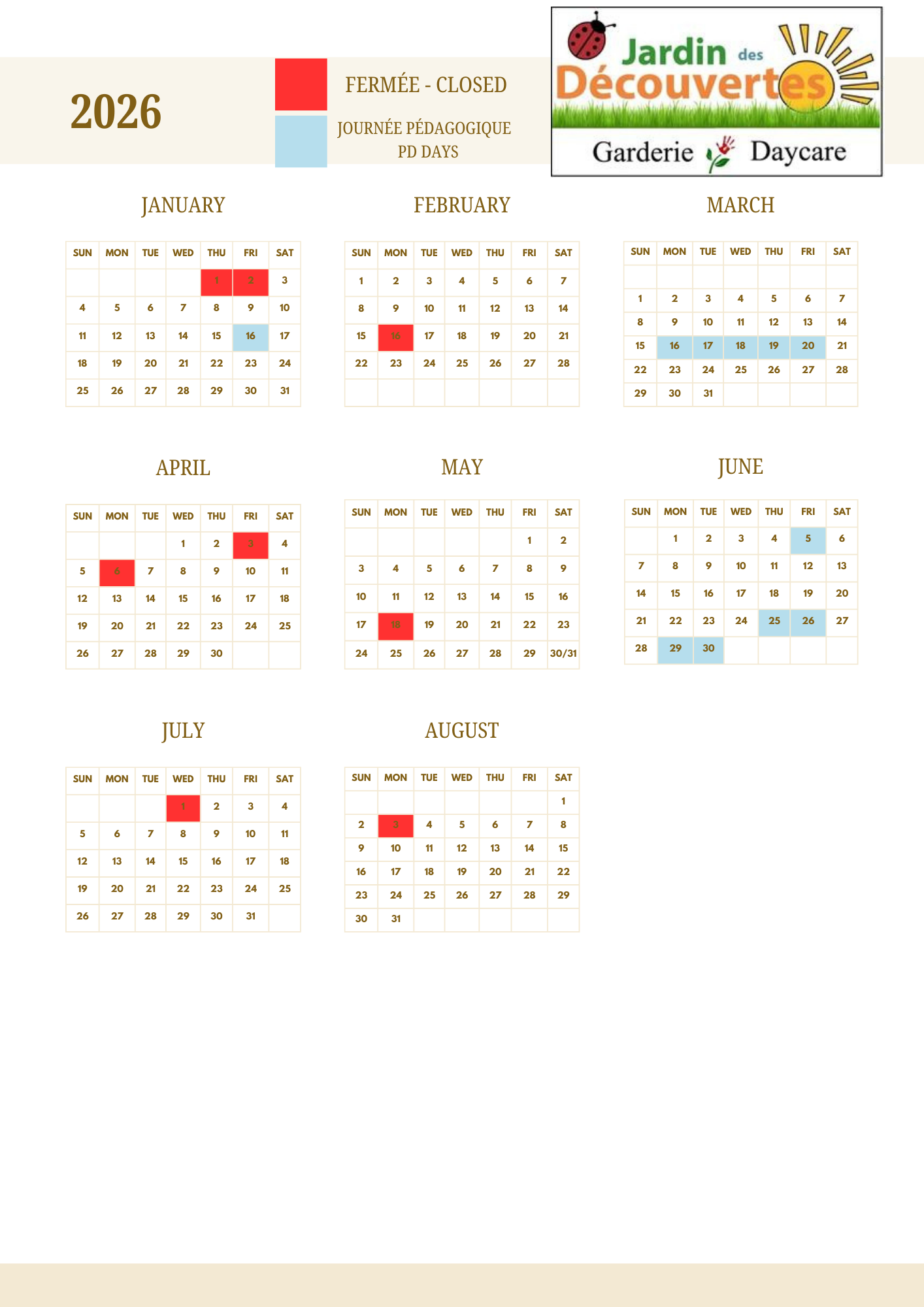 Le Jardin des Découvertes is a French daycare that follows a French based program and employs a child-centred philosophy.