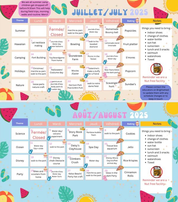 The daycare's curriculum is designed to facilitate your child's integration into French First Language or French Immersion schools.